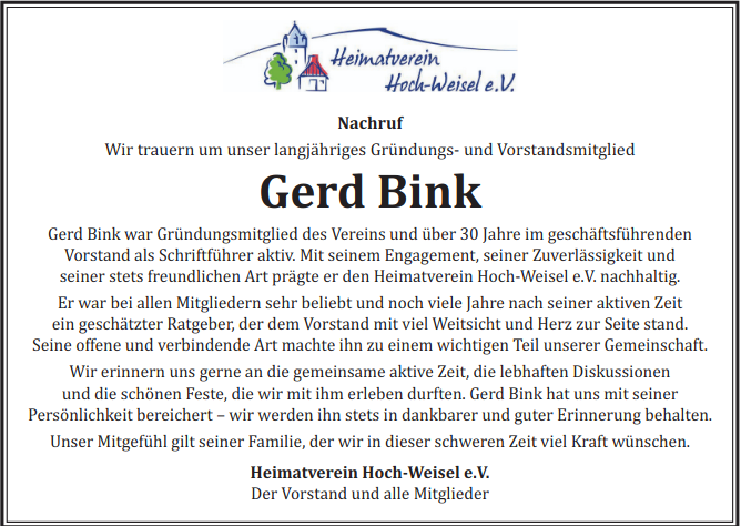 Liebe Mitglieder und Freunde des Heimatvereins Hoch-Weisel,